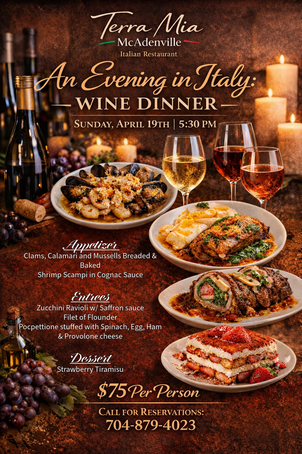 Fresh flavors have arrived at Terra Mia. From handmade pasta to perfectly seared steak, our weekly specials are ready for you. Which one are you trying first? Homemade Cavatelli: Broccoli rabe, shrimp, garlic, and olive oil. Pounded Skirt Steak: Marsala mushroom sauce with seasonal veggies. Tilapia Francese: Egg-dipped and pan-seared over creamy risotto primavera. Available now through March 12th. Tag your dinner date in the comments. www.terramiaitalianrestaurant.com